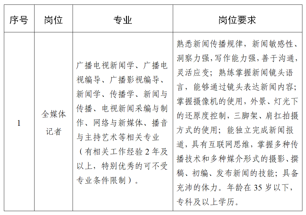因業(yè)務(wù)發(fā)展需要,丹棱縣融媒體中心委托丹棱縣大雅家園勞務(wù)服務(wù)有限公司面向社會(huì)公開招聘全媒體記者1名,具體內(nèi)容如下: