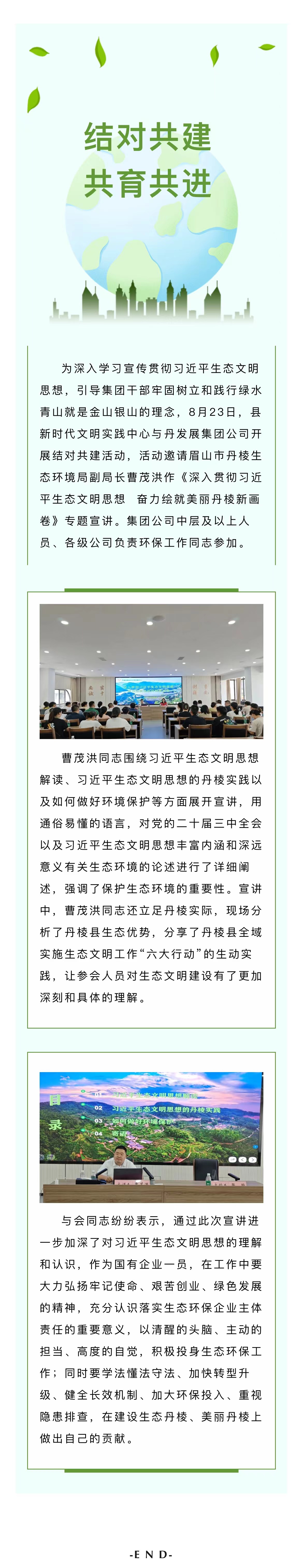 結(jié)對共建,共育共進|縣新時代文明實踐中心與丹發(fā)展集團公司舉辦習(xí)近平生態(tài)文明思想專題宣講活動