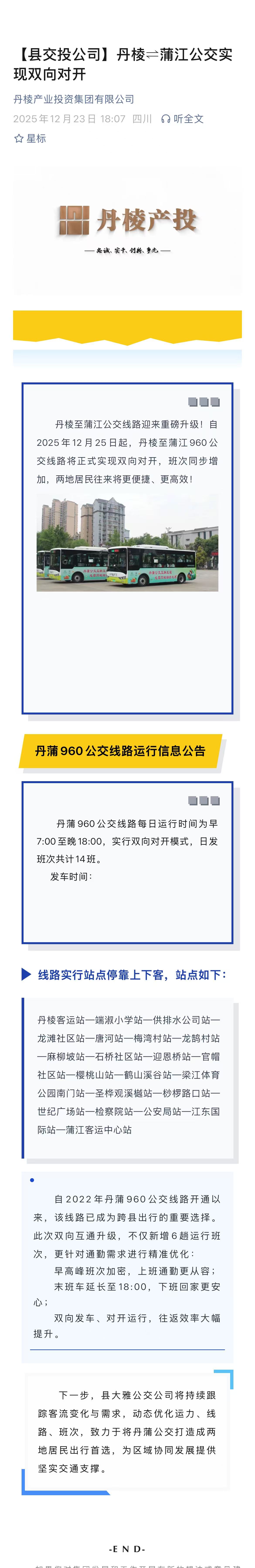【縣交投公司】丹棱⇌蒲江公交實(shí)現(xiàn)雙向?qū)﹂_