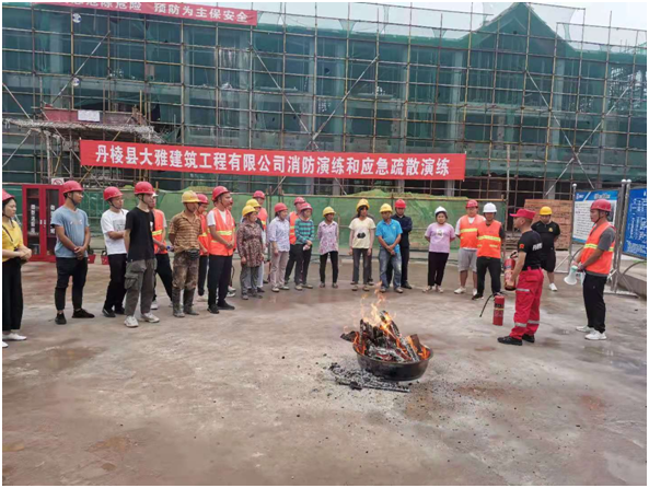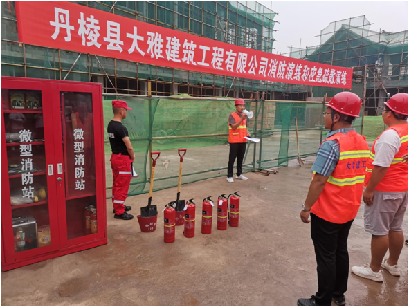 為進(jìn)一步提高丹棱縣大雅建筑工程有限公司(以下簡稱“縣大雅建筑公司”)全體工作人員消防安全意識和應(yīng)急處置能力,6月24日,我司在仁美鎮(zhèn)雙橋社區(qū)農(nóng)副產(chǎn)品交易中心項(xiàng)目(以下簡稱“雙橋項(xiàng)目”)施工現(xiàn)場組織開展了一場消防應(yīng)急演練,此次演練邀請到丹棱發(fā)展投資控股有限責(zé)任公司相關(guān)領(lǐng)導(dǎo)和部室人員觀摩指導(dǎo)。